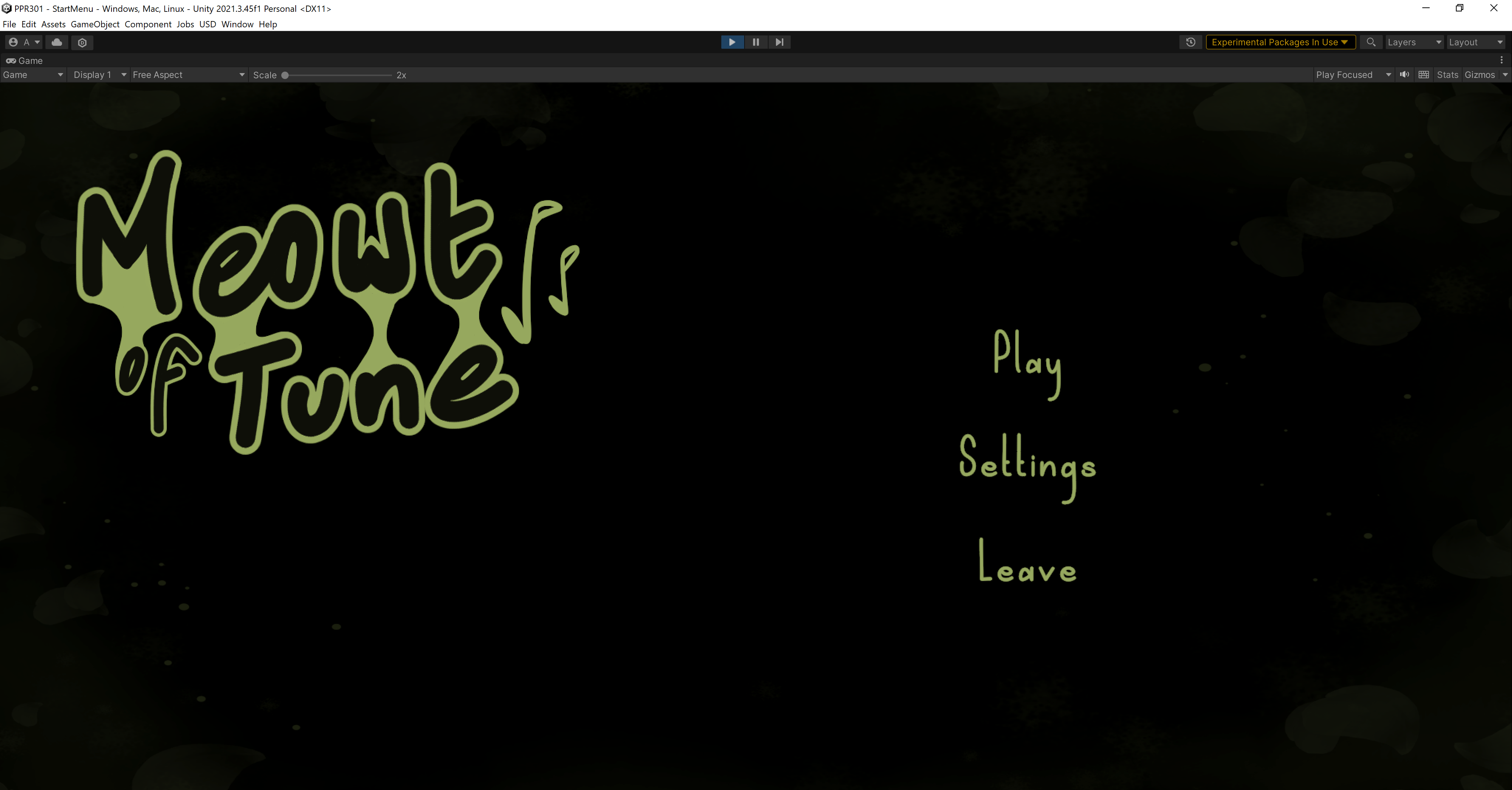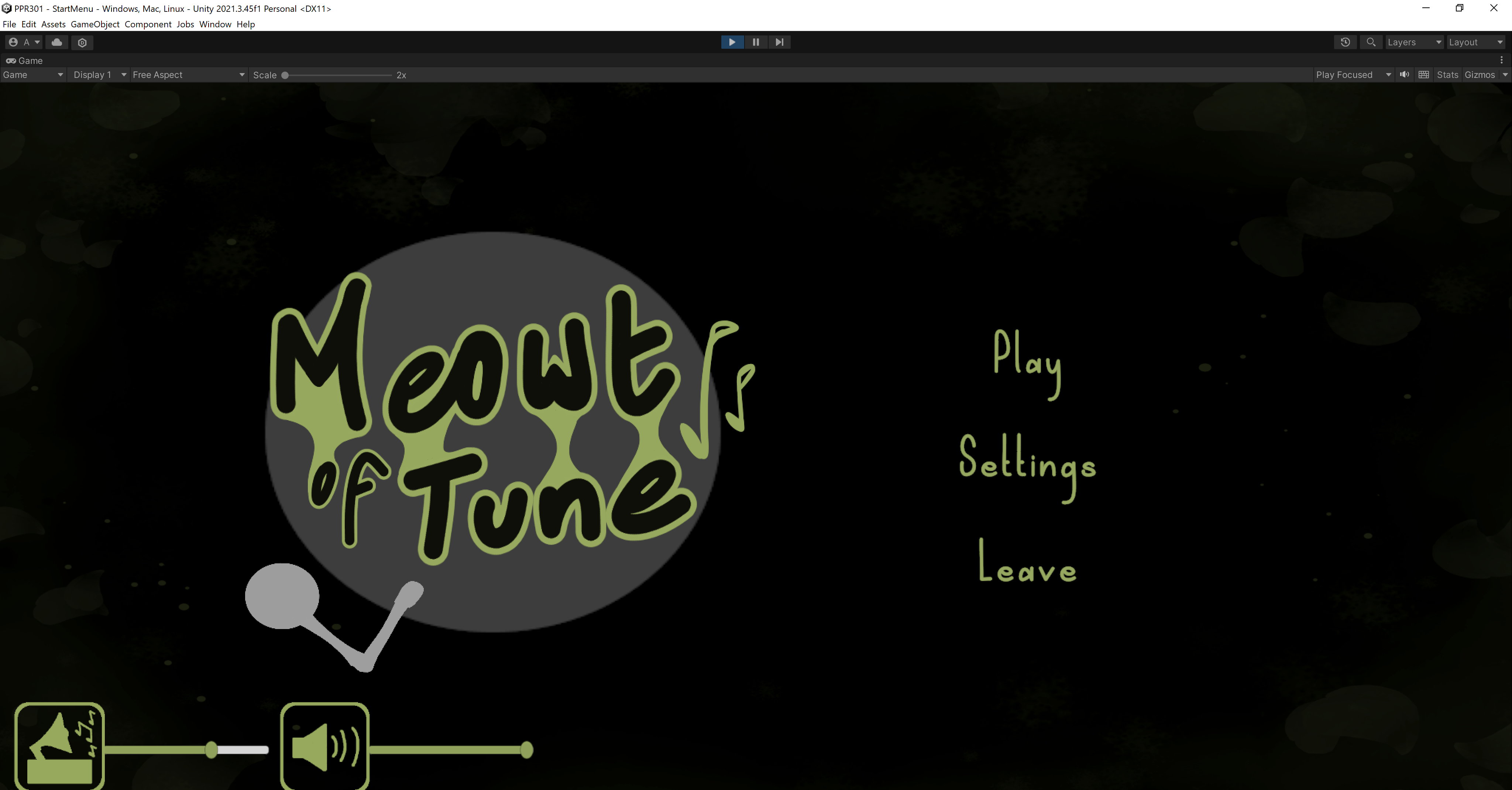 Our menu was previously talked about & was mentioned to be bland and boring. It didn't really have any personality or let the player know what the game was going to be about. Just plain text and title. We wanted it to look a little more interesting to the player & at the same time add some mysteriousness. First, we moved the buttons to the right and turned the title into a little vinyl record where, when clicked on, changes the background music. The text also pops out and is animated. We also added a music and audio slider to manage their respective volumes. When the music is muted the vinyl's stylus comes off to show it isn't playing any more like a real turntable. The game came with 4 Voodoo Vince soundtracks which were later replaced by generative AI due to copyright reasons. The mouse cursor was also turned into a cat paw that leaves a pawprint when clicking.
